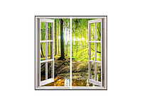 [E822] 120x60 Landscape Window Panel set (2 pcs), 2 x 60W, With Wall mounting kit, Lush Green Trees