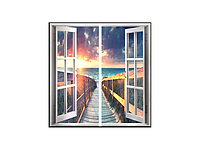 [E823] 120x60 Landscape Window Panel set (2 pcs), 2 x 60W, With Wall mounting kit, Bridge leading towards the beach