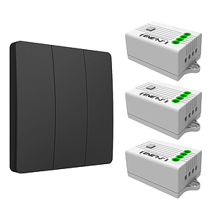 3 Gang Wireless Kinetic Switch (black body) + 3*500W RF Receiver