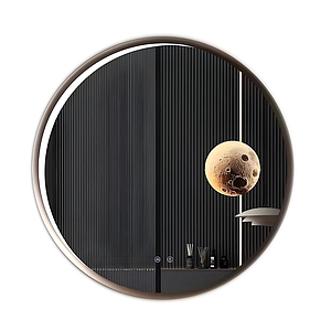 Round Aluminum LED Mirror with Moon Design - 70cm Diameter, Dimmable & CCT Adjustable Lighting