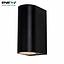 Height 145mm x Width 65mm x Projection 95mm Requires 2 GU10 Base mains lamps up to 35 Watts each. Provides both up and down lighting Suitable for use with LED and energy saving lamps. IP44 rated providing protection from splashed water.